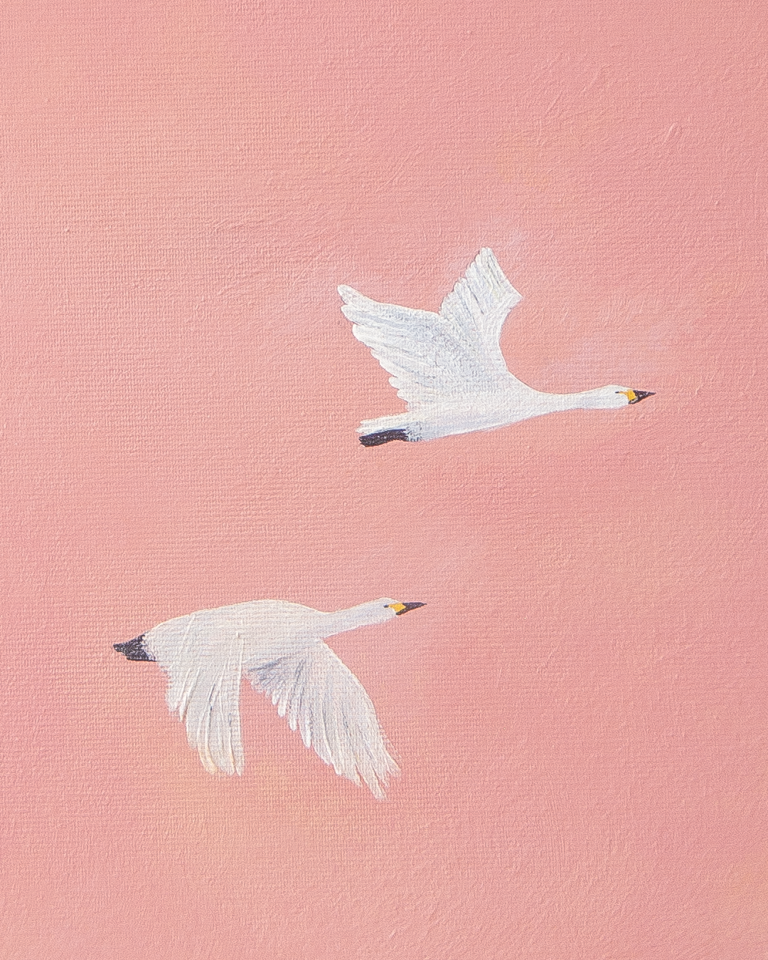Two birds float in harmony across a pink sky, carrying the sweetness of beginning and the hope of everything still to come.